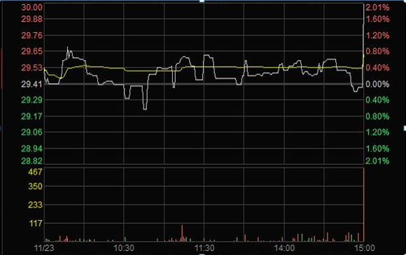2011年11月23日臨近收盤(pán)期間(14:56:24至14:59:28),任某某為了在短期內(nèi)拉升股價(jià),大量申報(bào)買(mǎi)入“X”4筆共計(jì)63,000股,占尾市階段市場(chǎng)申買(mǎi)量的比例高達(dá)75.54%;委托價(jià)格由29.60元升至32.00元,每筆均高于當(dāng)時(shí)市場(chǎng)上的買(mǎi)1檔價(jià)格,三分鐘內(nèi)將股價(jià)由29.35元拉升至30元收盤(pán),拉升幅度達(dá)2.21%。(見(jiàn)下圖)